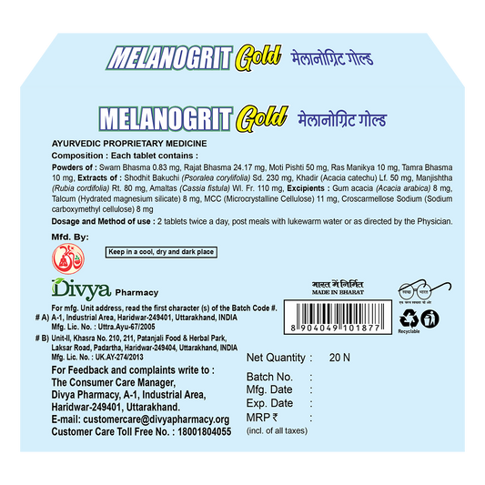 Sold outDIVYA MELANOGRIT GOLD 20 N
